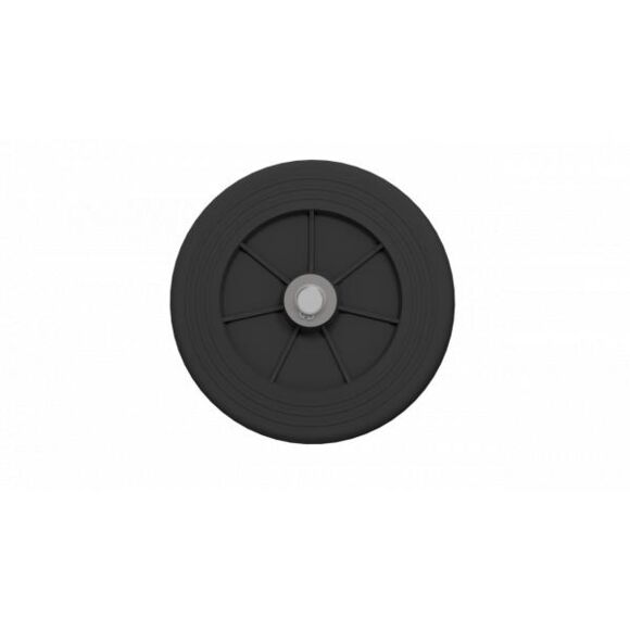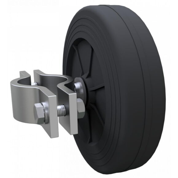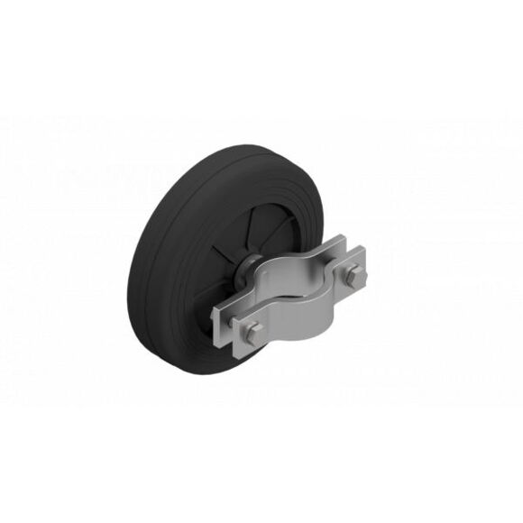 rubber roller Ø150 mm, black, plastic rim, Plain bearing incl. mounting device